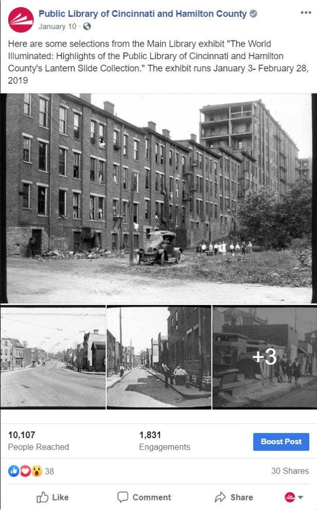 Here’s an example: Earlier this year, my library put a collection of lantern slides on display as part of a specially curated exhibit. These slides were part of our collection. They’d been sitting in a dark storage area for ages.