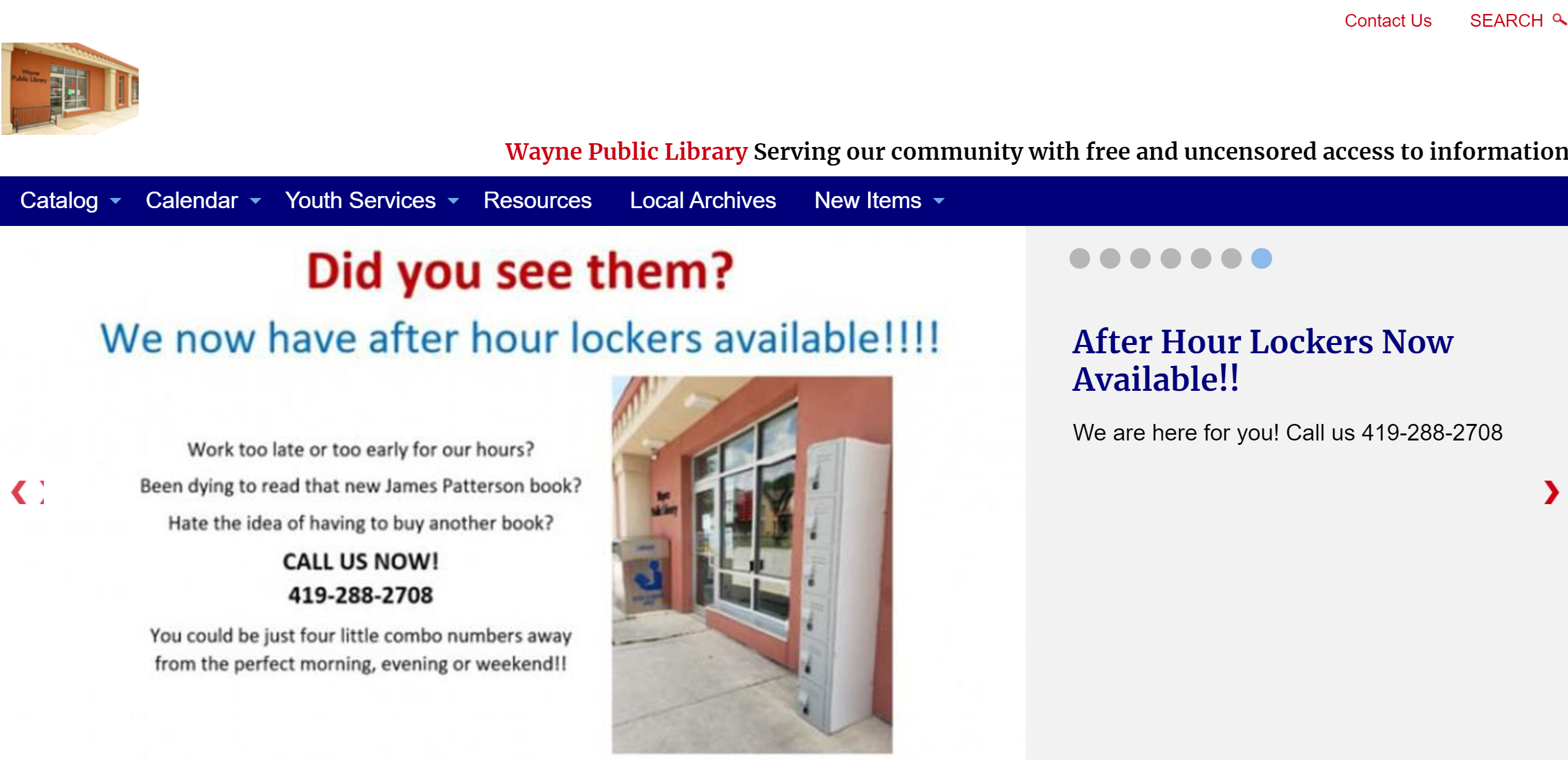 Wayne Public Library uses its website to promote its lockers.